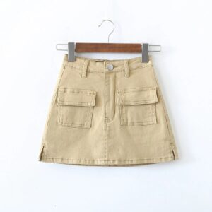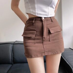 This A-line utility skort combines the sleek silhouette of a mini skirt with the comfort and practicality of built-in shorts. Featuring a high-rise fit and cargo-style flap pockets, it delivers a bold streetwear aesthetic. The stretchy fabric ensures flexibility and all-day wearability. Available in a variety of colors—from neutrals to brights and camo—this piece is perfect for pairing with crop tops, tees, or oversized jackets for a casual yet edgy look.