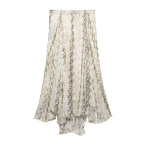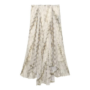 This flowy midi skirt blends elegance with urban attitude, featuring bold snake and plaid prints on a soft, breathable fabric. The high-waisted cut and wide asymmetric hem create graceful movement with every step. Light and airy, it’s perfect for warm weather and easily styled with fitted tops, tucked-in blouses, or relaxed shirts for a chic seasonal look.