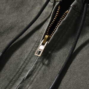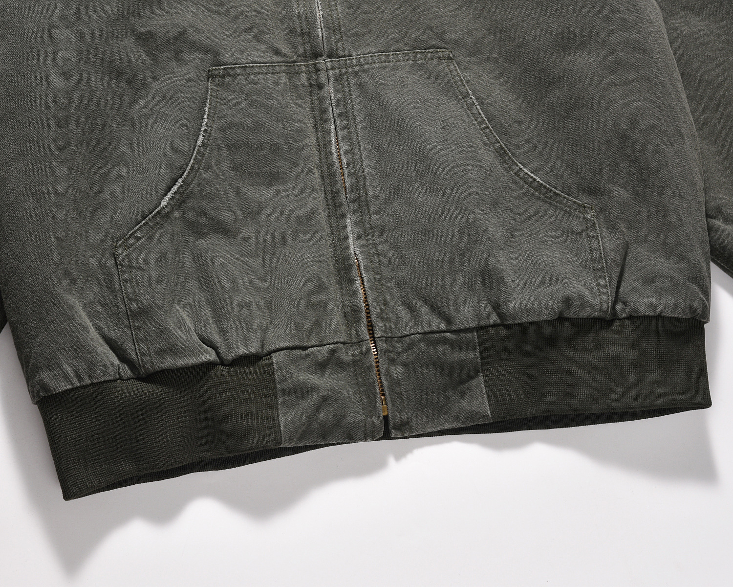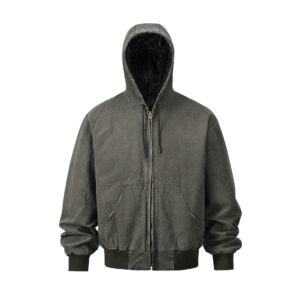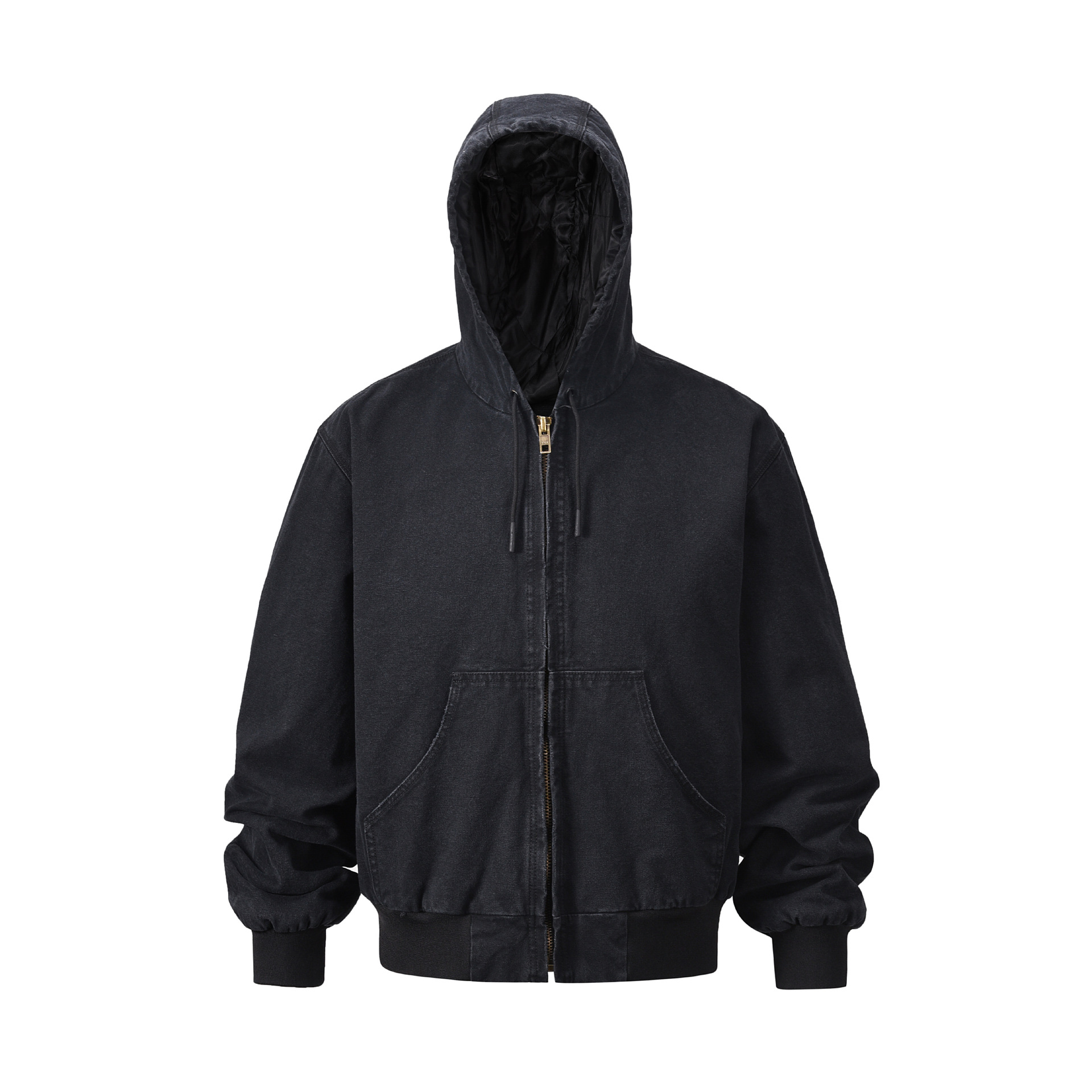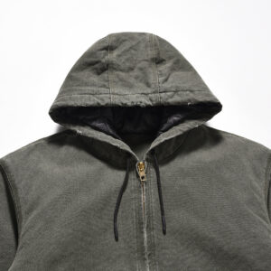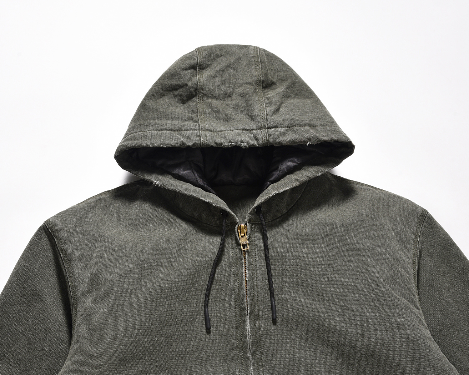 This hooded jacket features a washed finish for a natural vintage look and is padded with thick cotton for superior warmth. The adjustable drawstring hood offers added protection against wind and cold. Functional angled front pockets add everyday convenience, while the ribbed cuffs and hem help retain heat and structure. Perfect for transitional weather or layered winter styling, it’s an essential in any urban or utility-inspired wardrobe.